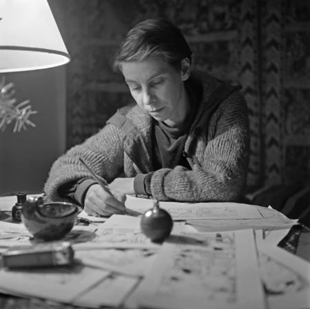 Det finns en episod i "Pappan och havet" (1965) som säger mycket om Tove Jansson och hennes konstnärskap. Muminmamman som känner sig melankolisk och har svårt att finna sig tillrätta på den karga ö dit familjen har flyttat, börjar en dag rita på de kala väggarna i fyren, först lite förstrött, småningom med allt större iver. Av hjärtats lust och längtan återskapar hon trädgården hemma i mumindalen, och inte bara den vänliga naturen utan också delar av muminhuset, verandan, salongen, köket... En kväll i solnedgången när hon är nästan färdig öppnar sig trädgården och hon stiger in i sin målning. "Mamman var inte förvånad över vad som hade hänt, hon var äntligen i sin egen trädgård där allting fanns på plats och allting växte som det skulle. Ett och annat var lite feltecknat men det gjorde ingenting. Hon satte sig i det höga gräset och lyssnade till göken som gol nånstans bakom floden."